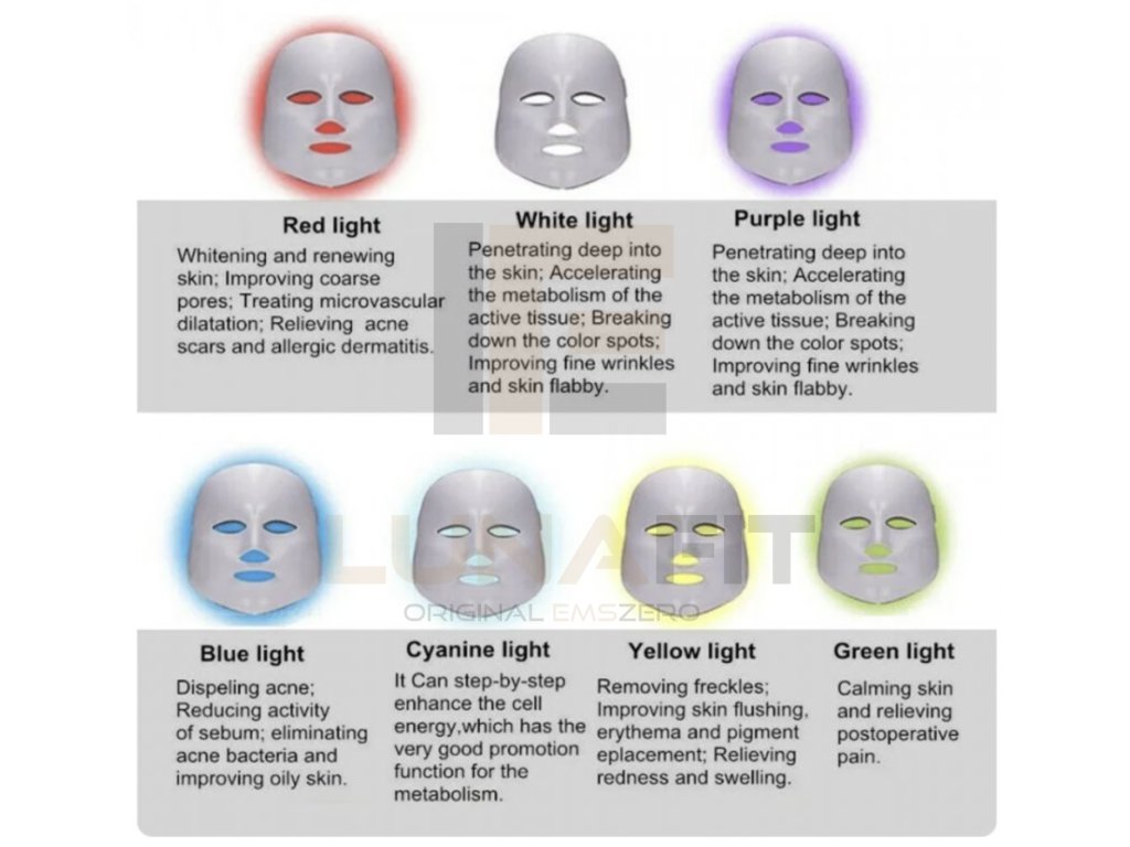 G:LED Maska: Bělení ředění skvrn; Anti-akné a protizánětlivé; Udržujte rovnováhu vody a oleje;Bělení pokožky; Doplňte energii; Zlepšit jemné linky; Zpevňující pleť.
