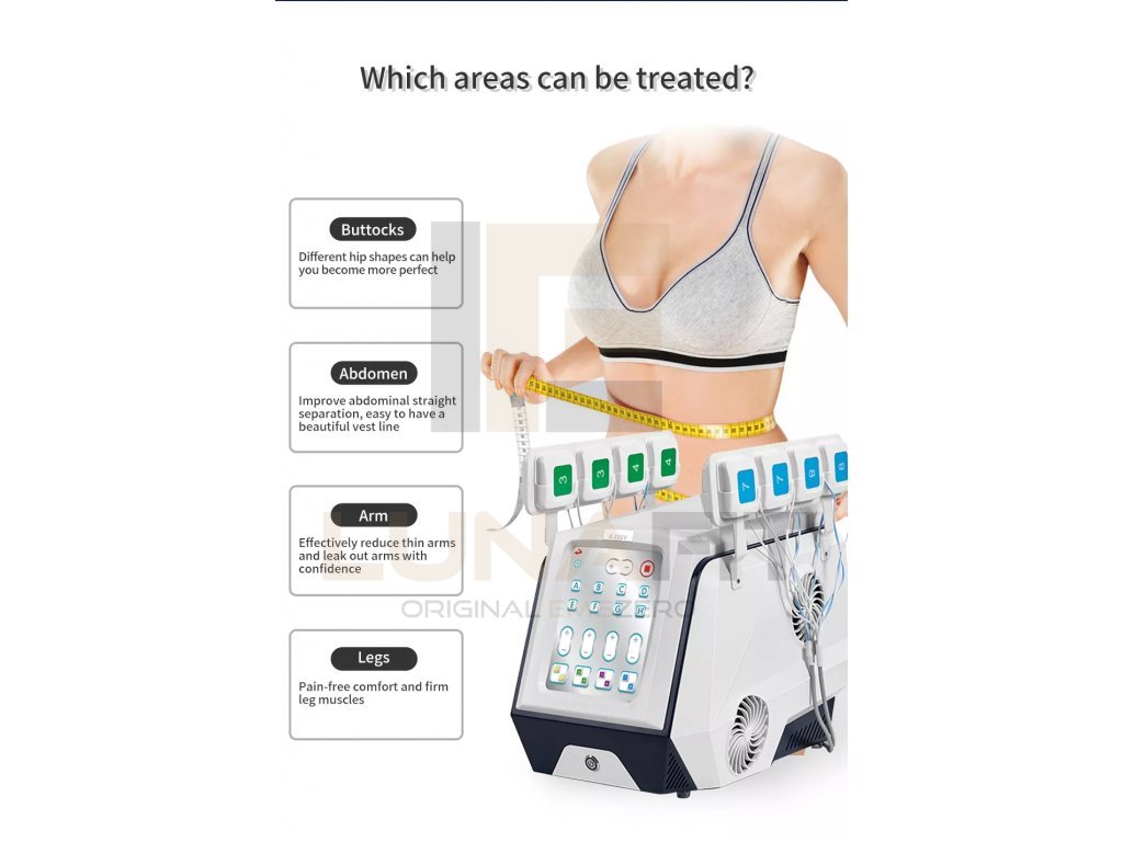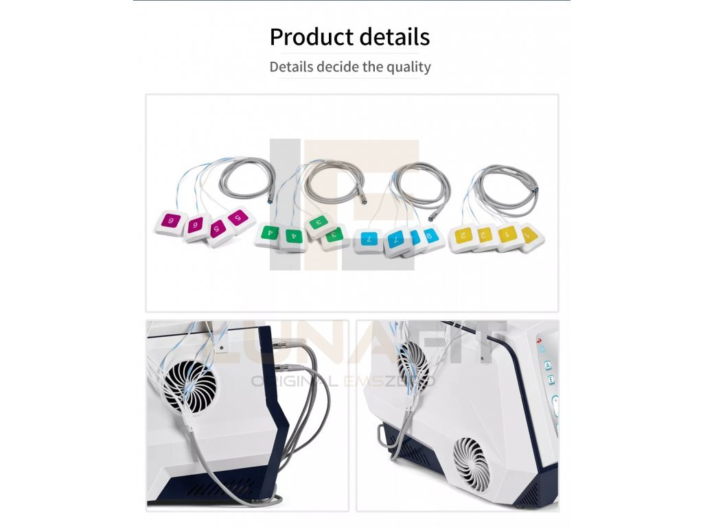 Model EMS Multi 16 přináší novou úroveň flexibility. Díky vysokému počtu aplikačních bodů můžete pracovat na břiše, hýždích, stehnech i pažích v rámci jednoho cyklu. Elegantní design v bronzovém provedení a stacionární konstrukce na kolečkách z něj činí ideální volbu pro moderní studia s vysokým vytížením.