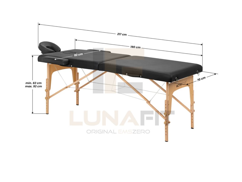 Skládací dřevěný masážní stůl Komfort Activ Fizjo Lux 2 segmentový 190x70 černý